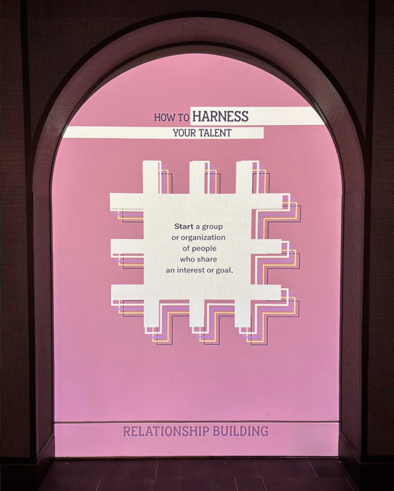 Inside the Foundations of the Dream gallery, we find the Talent Portals, a playful quiz that reveals visitors’ unique entrepreneurial strengths. Modeled after the CliftonStrengths Assessment, each portal is a quick, no-wrong-answer quiz that shows how you stack up across 4 core strengths, and spotlights the one where you shine the most. Here’s why it matters: using your strengths daily nearly doubles your confidence in reaching your dreams.