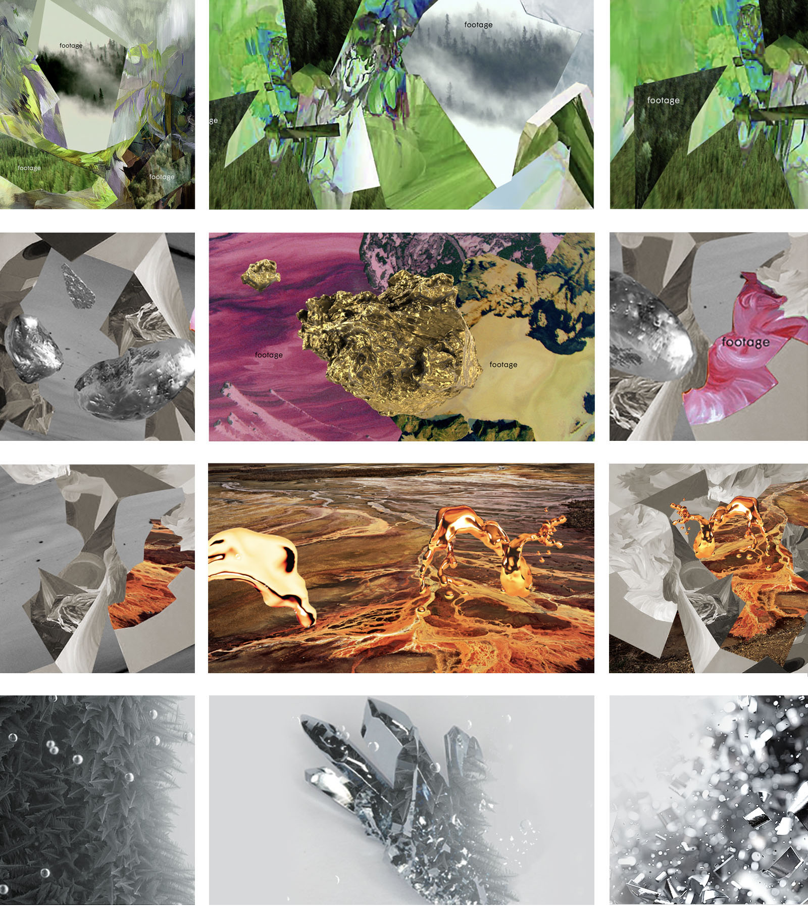 Using motion design and 3D objects combined with Burtynski's footage, we evoke the transformation of nature by men, the evolution of environment. We discover raw nature, mines, silver and gold nuggets, oil sands, lava and metal. We dive into the element of metal, to discover its physical structure, build up of polygones and liquid reactions…