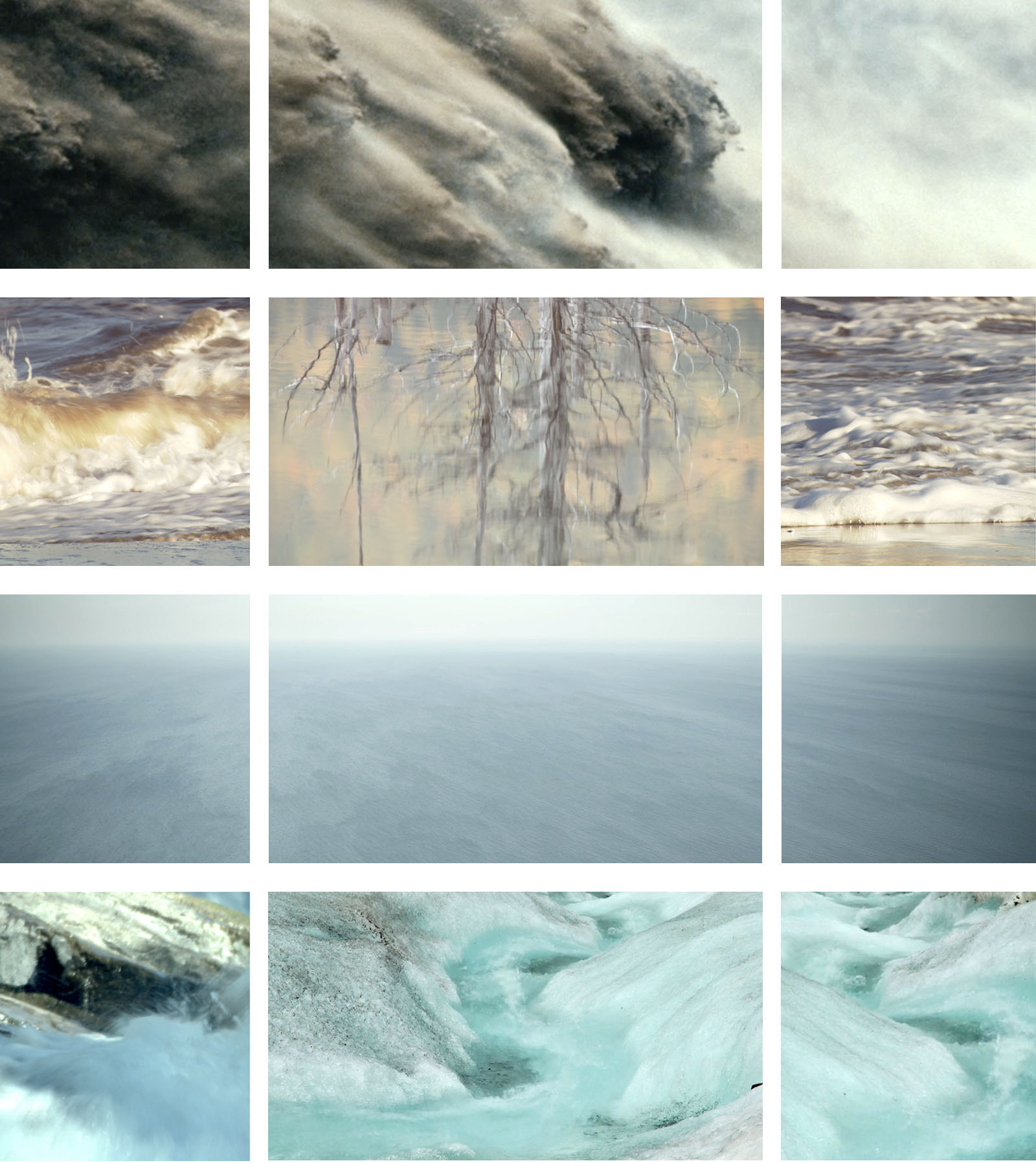 From massive, slow waterfalls, strong and playful river currents, to the vastness and deepness of the ocean, we assist a visual choreography, where currents dance in harmony with music notes, supported by a dynamic editing between 3 screens.