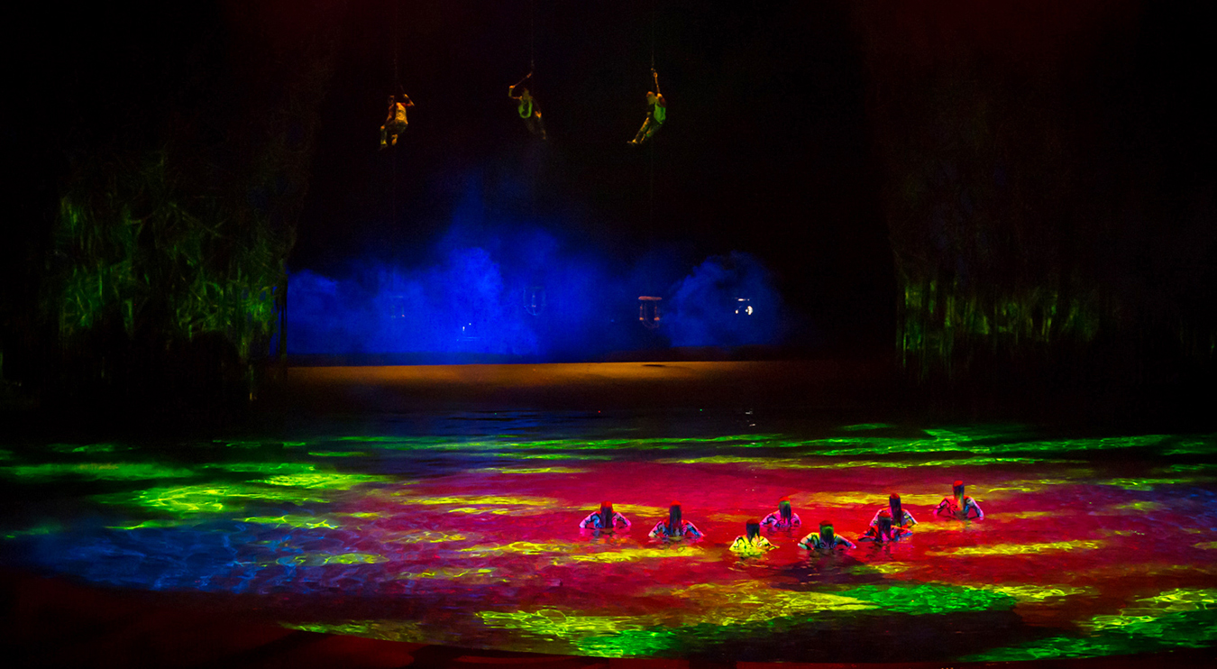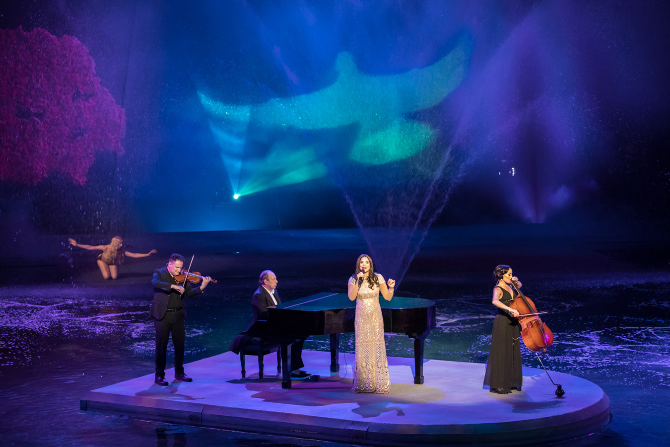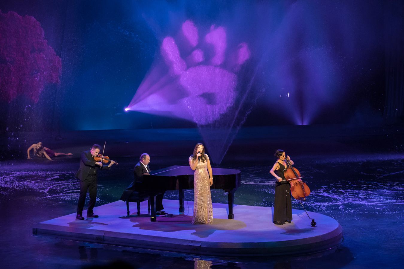 Video projection designed for the rain, the fountains, the pool, the floor, and installations, for the annual One Drop show, at the Bellagio O theatre, in Vegas.